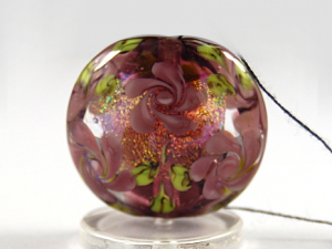 Floral with Dichro - 25mm (1") lentil focal lampwork bead