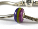 This 3 tone bead is purple, lime green and fuchsia. It has a sterling silver core (not glued in rivets) and is made to fit most European charm bracelets. It measures 13.3 x 8.3mm, hole = 4.3mm.