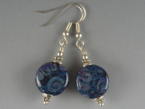 Sterling Silver Earrings - Ocean blue with multicoloured doodles