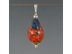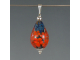 This pendant features one of my handmade glass beads with sterling silver findings. It is teardop shaped with a blue core, encased in clear with red flowers.