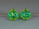 Matching pair of lampwork beads, lime green/aqua and fine silver wire.
