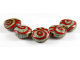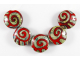 These five beads have a red scroll on a neutral background. They measure approx 19mm in diameter and 9mm thick. They were made on 1/16” mandrels and were properly kiln annealed.