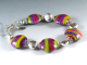 I made this bracelet using my own lampwork beads plus sterling silver. The main beads are 19mm lentils. The colours are correct on my monitor.